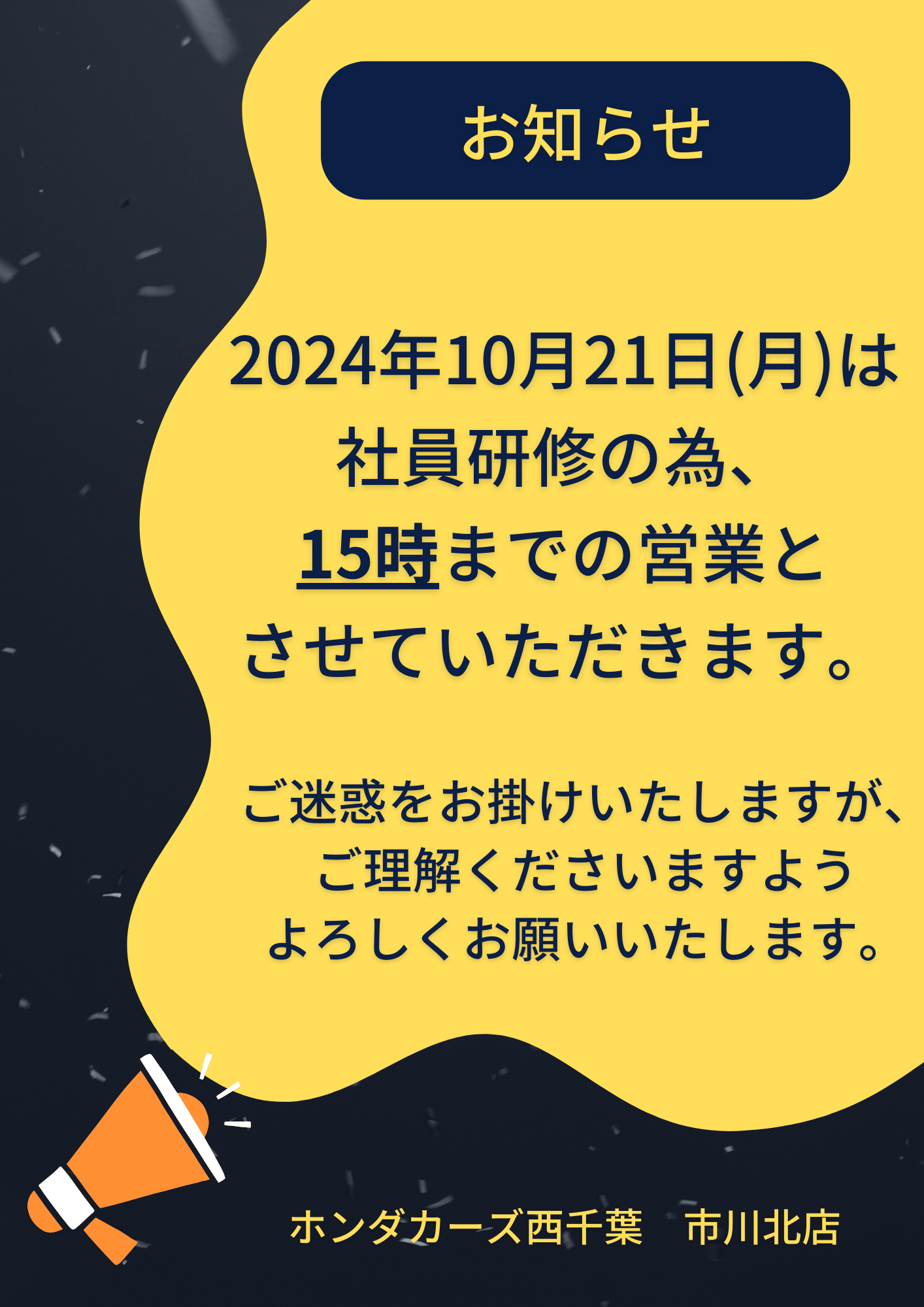 10月21日(月)は社員研修の為営業時間を