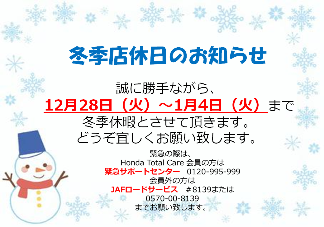 さて年末年始のお休みのご案内です。