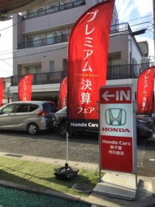 市川西店の前にも情熱の赤の旗がなびいております🚩