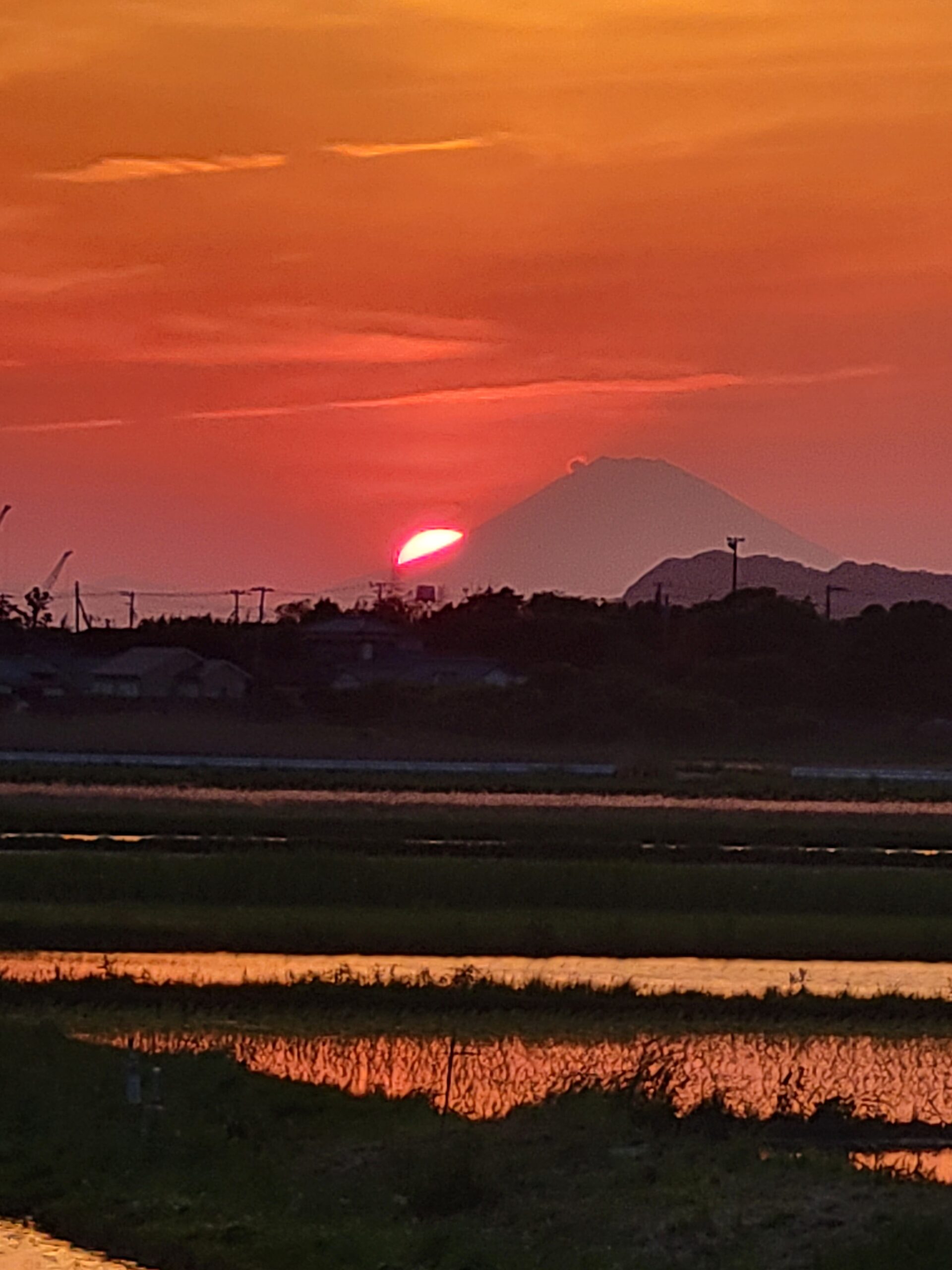 晴れていたので富士山も見えて、夕陽もなんかいい感じに撮れました♪