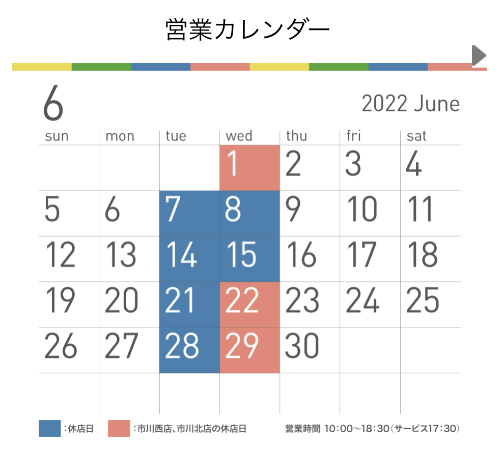 さて、6月の定休日のお知らせです。
