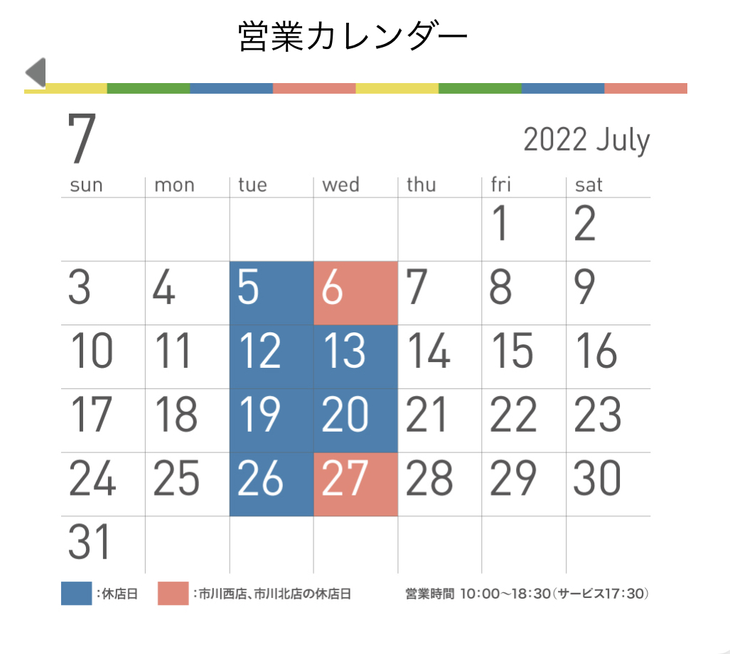 さて本日は7月の定休日のご案内です。