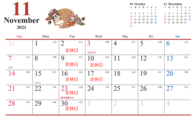 ☆11月の定休日ご案内です☆