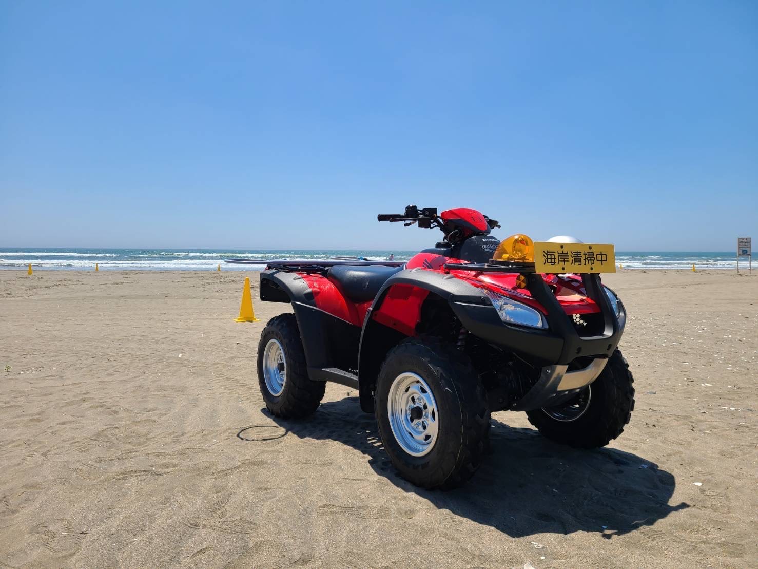 手拾いが済んだ場所はビーチクリーナーで砂の中に埋もれたゴミを効率よく回収!