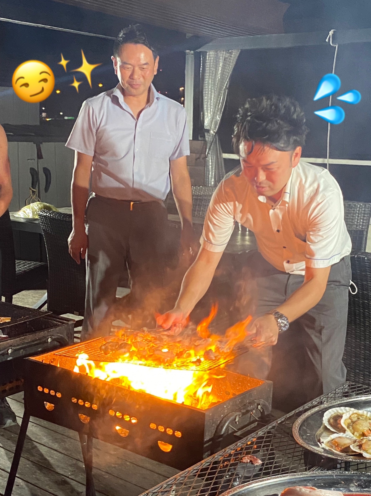 営業•加崎の焼き姿を見守る北村店長…🤭💭