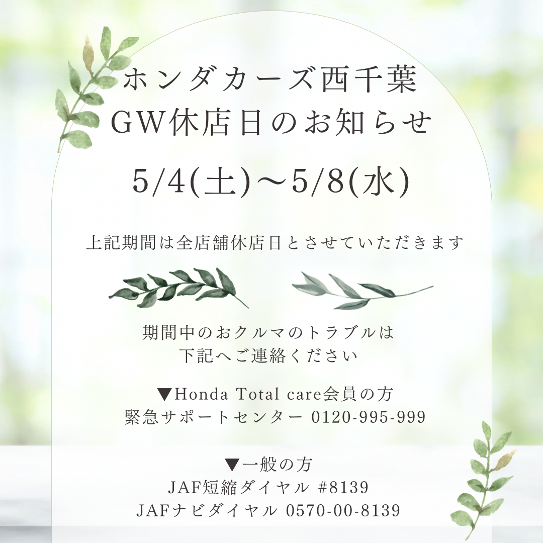 市川西店GW休店日のお知らせ