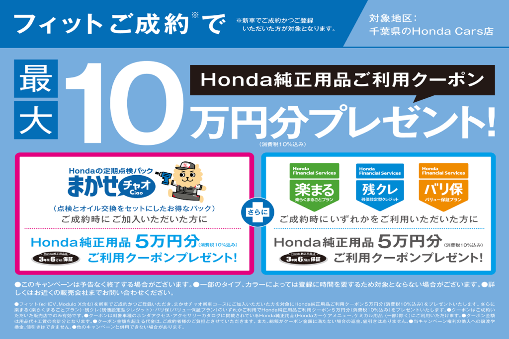 また、今ならFITご成約で最大10万の純正用品クーポンつき!!