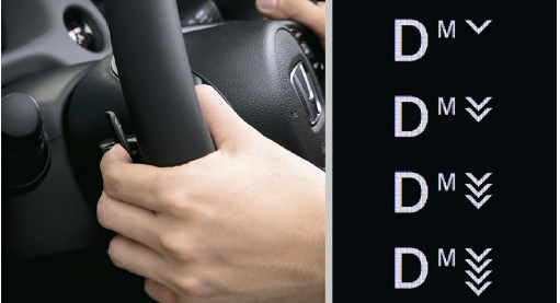 【減速セレクター】 ステアリングにあるパドルで減速の強さを4段階でコントロールします。