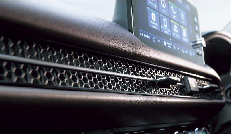 横一文字のエアコンアウトレットを採用。ワイド感を強調するとともに、