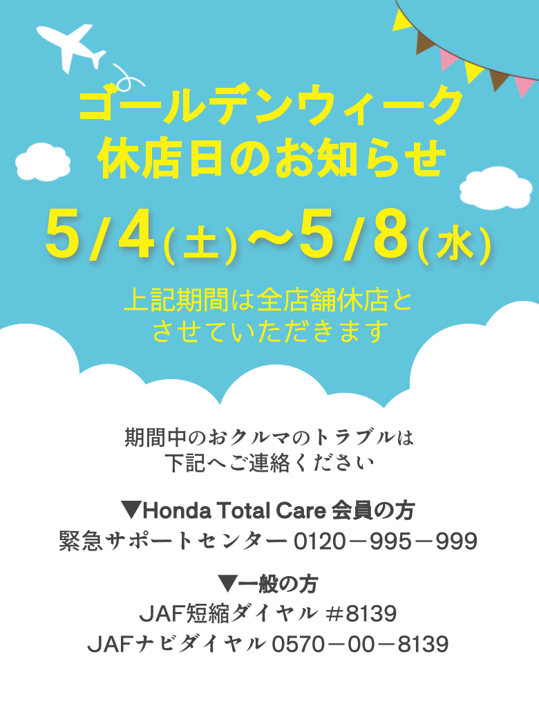 TOP > ニュース > ゴールデンウィーク休業のお知らせ